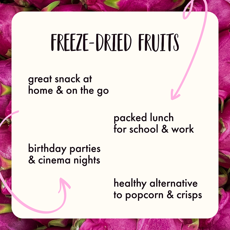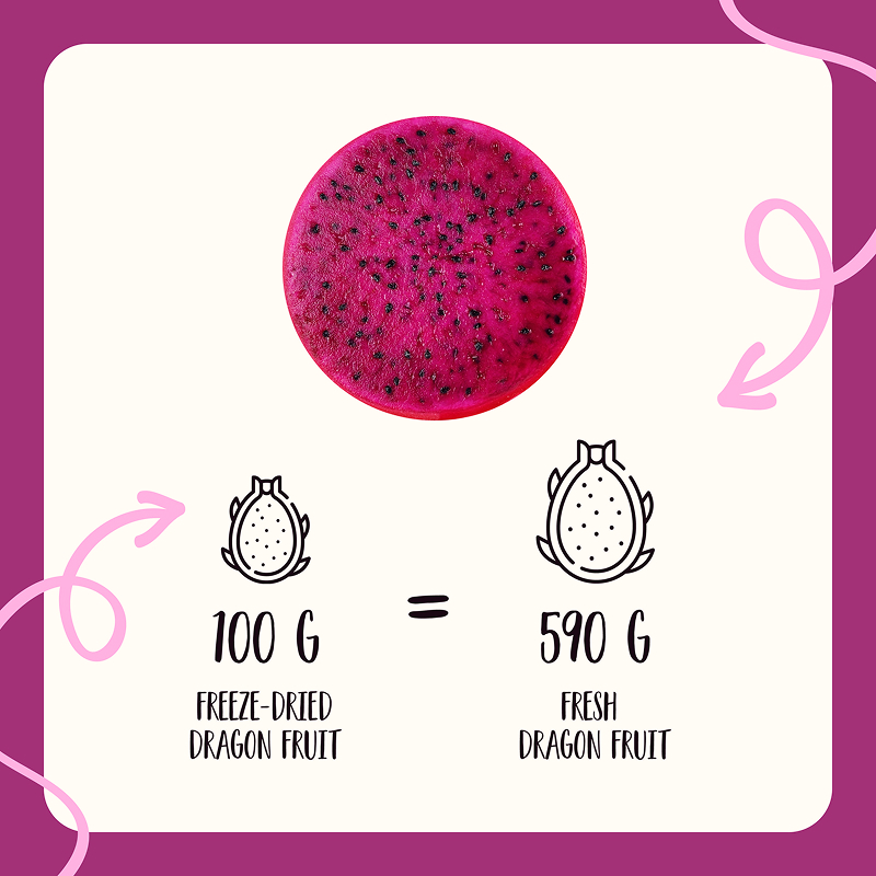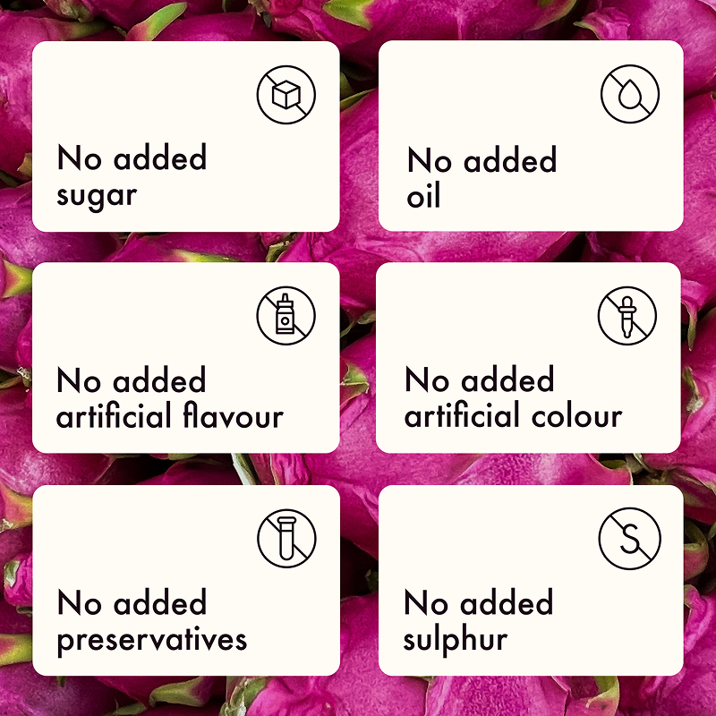 We pick only the finest, wholesome dragon fruits and freeze-dry them, in order to preserve their original flavour and nutritional content.
