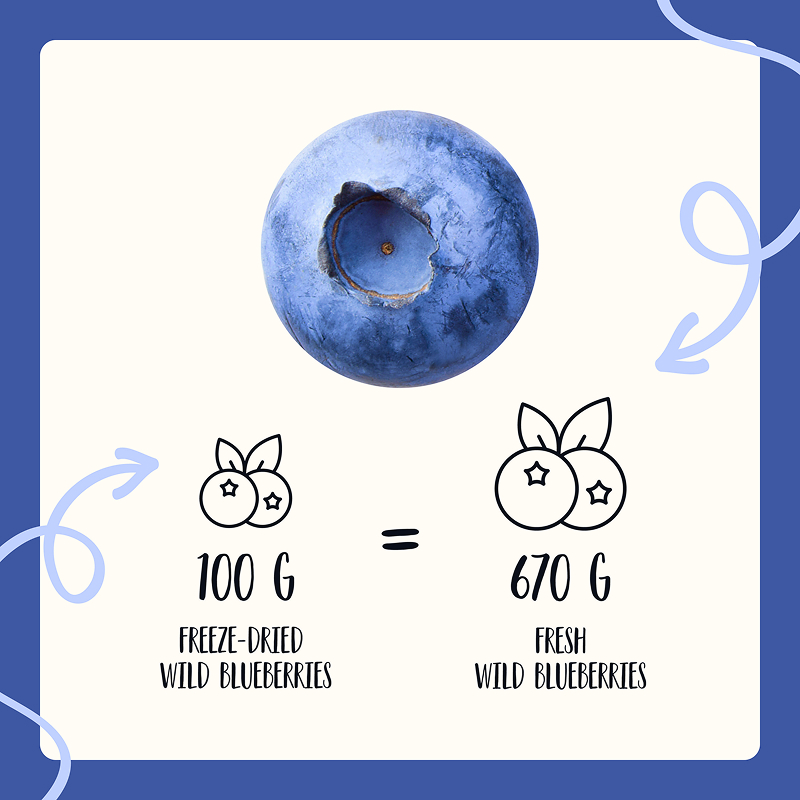 Thanks to their freeze-dried form (freeze-dried organic wild blueberries), this astonishing fruit can be enjoyed throughout all the seasons!