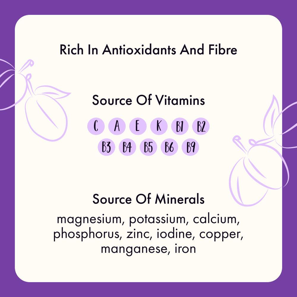 Contributing actively to the prevention of diabetes and obesity, plums harmonise the body’s metabolic rhythms, ensuring a harmonious flow of vitality. Their influence gently cascades through our system, lowering cholesterol levels and reducing the risk of osteoporosis, showcasing their multifaceted therapeutic contributions.